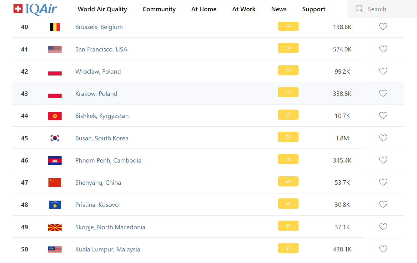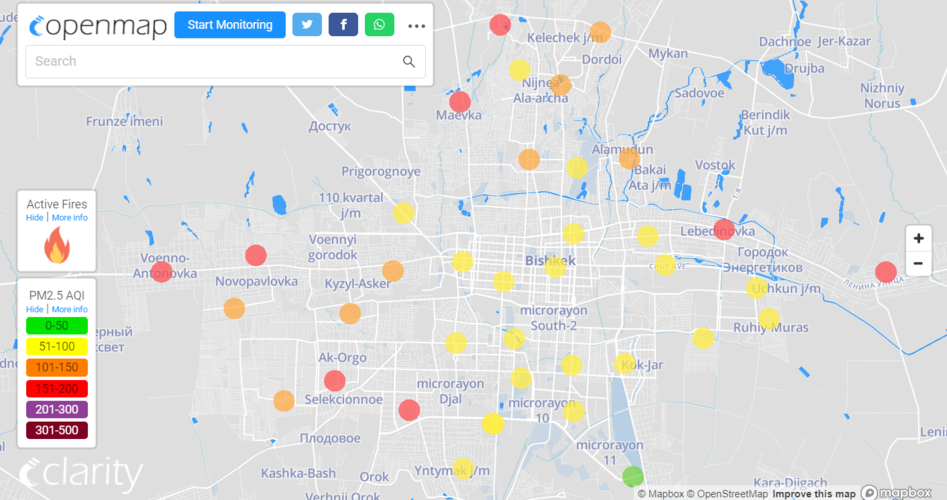В рейтинге крупнейших городов мира по качеству воздуха World Air Quality Бишкек поднялся на 44-е место.