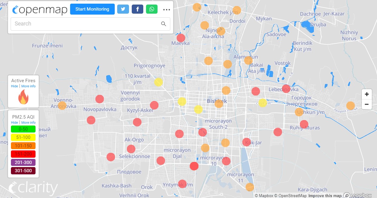 В рейтинге крупнейших городов мира по качеству воздуха World Air Quality Бишкек находится на 14-м месте.