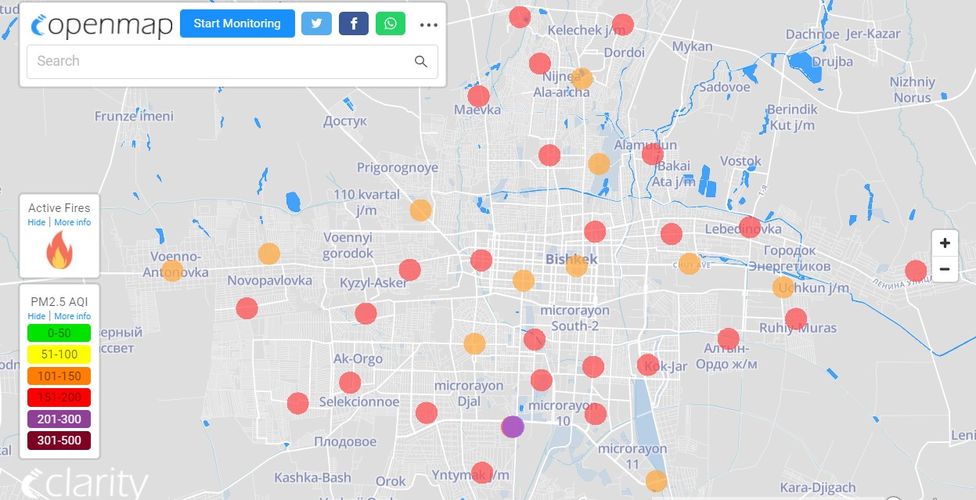 В рейтинге крупнейших городов мира по качеству воздуха World Air Quality Бишкек поднялся на 4-е место.