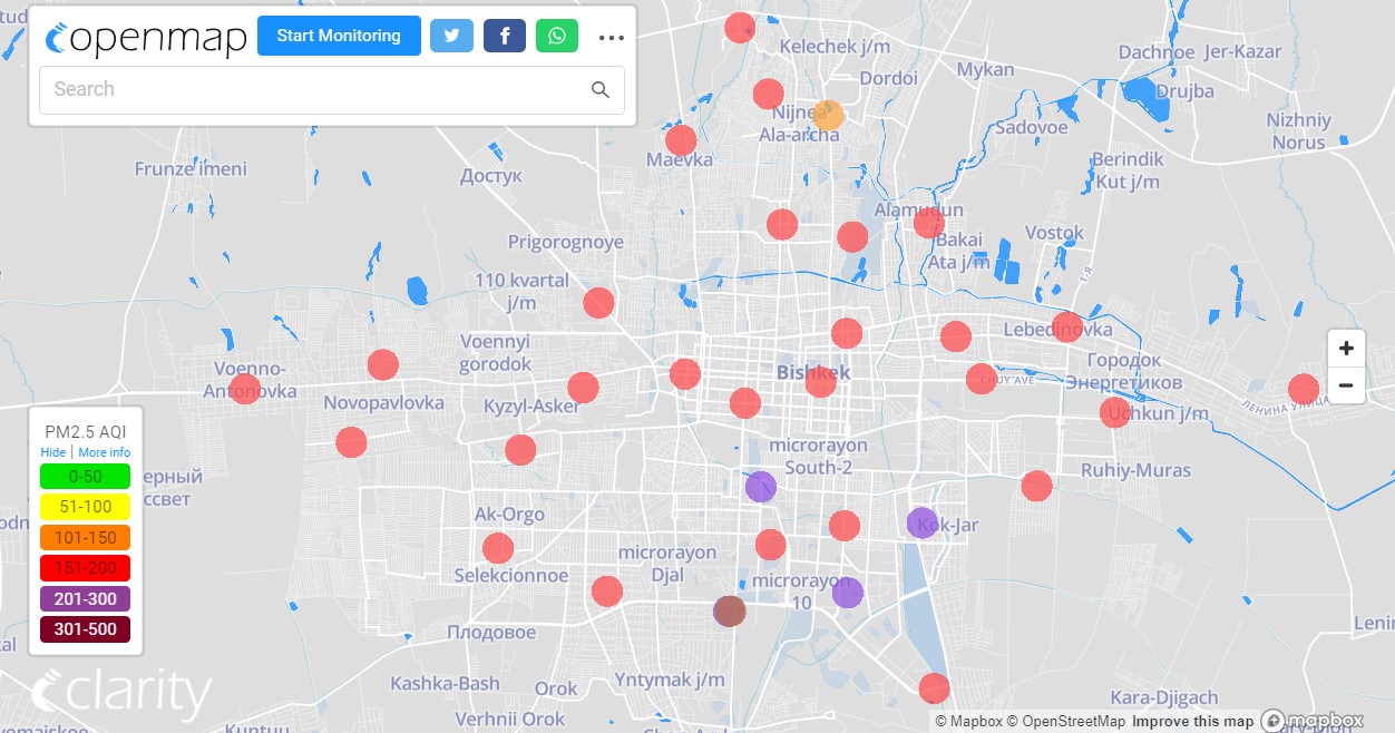 В рейтинге крупнейших городов мира по качеству воздуха World Air Quality Бишкек опустился на четвертое место.