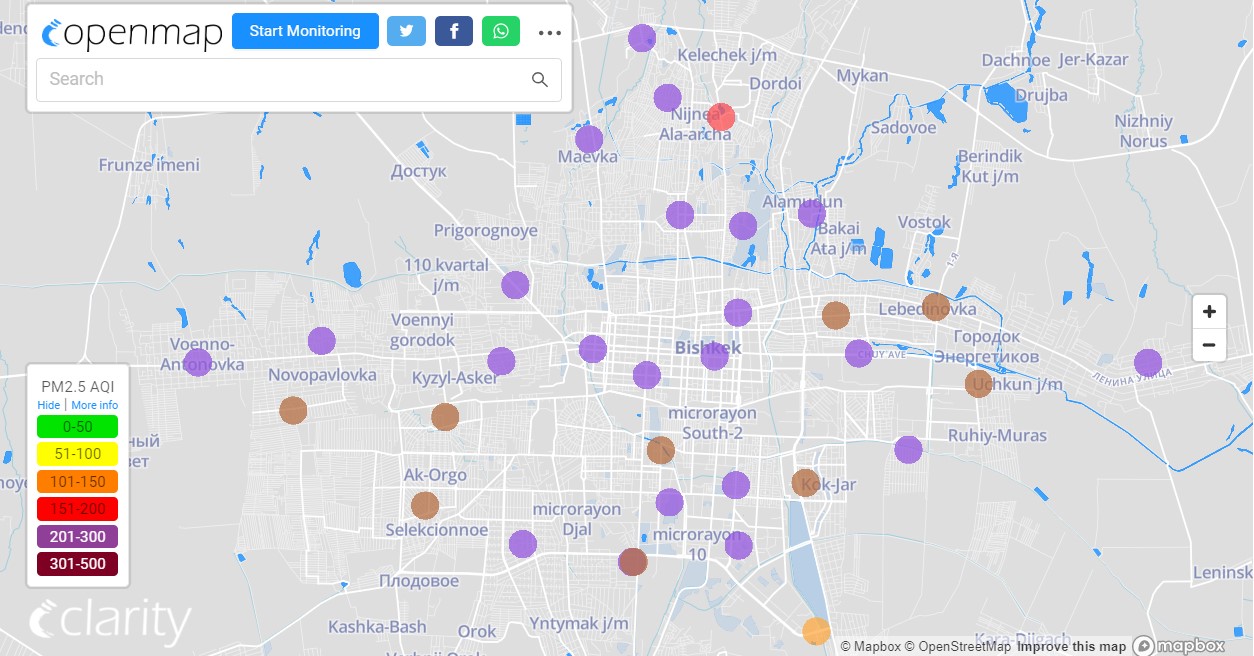 В рейтинге крупнейших городов мира по качеству воздуха World Air Quality Бишкек находится на третьем месте.