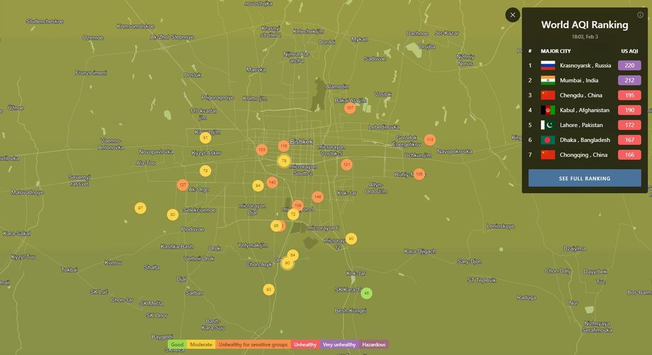 В рейтинге крупнейших городов мира по качеству воздуха World Air Quality Бишкек опустился на 31-е место.