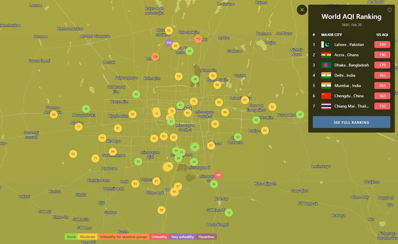 В 18.00 статус города отмечен как «умеренный». Индекс качества воздуха, по данным сайта, составляет 57 (AQI).