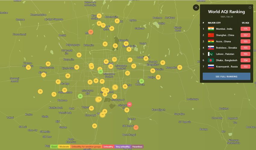 В 18.00 статус города отмечен как «умеренный». Индекс качества воздуха, по данным сайта, составляет 67 (AQI).