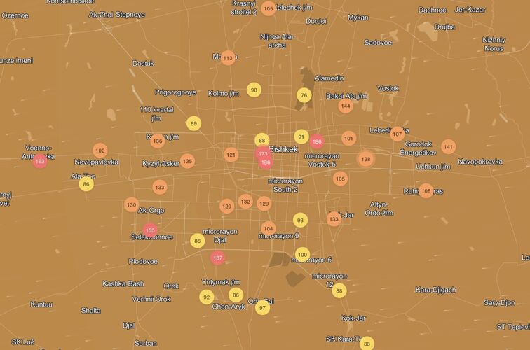 В рейтинге крупнейших городов мира по качеству воздуха World Air Quality на 18.00 Бишкек находится на 12-м месте.