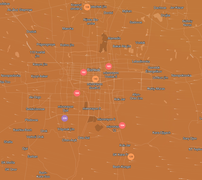 Добавим, что недавно Бишкек стал лидером по загрязнению воздуха в мире. Ранее министр природы Медер Машиев заявил, что в городе смога стало меньше. По его словам, основные причины смога — это отсутствие катализаторов у 85 процентов автомобилей в стране, увеличение количества жилмассивов вокруг столицы, хаотичное, неплановое строительство и вырубка деревьев.