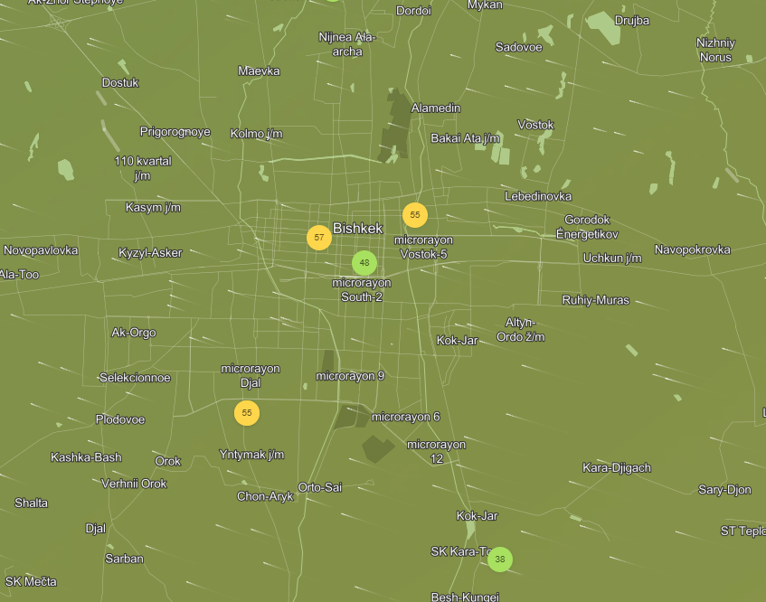 Добавим, что недавно Бишкек стал лидером по загрязнению воздуха в мире. Ранее министр природы Медер Машиев заявил, что в городе смога стало меньше. По его словам, основные причины смога — это отсутствие катализаторов у 85 процентов автомобилей в стране, увеличение количества жилмассивов вокруг столицы, хаотичное, неплановое строительство и вырубка деревьев.