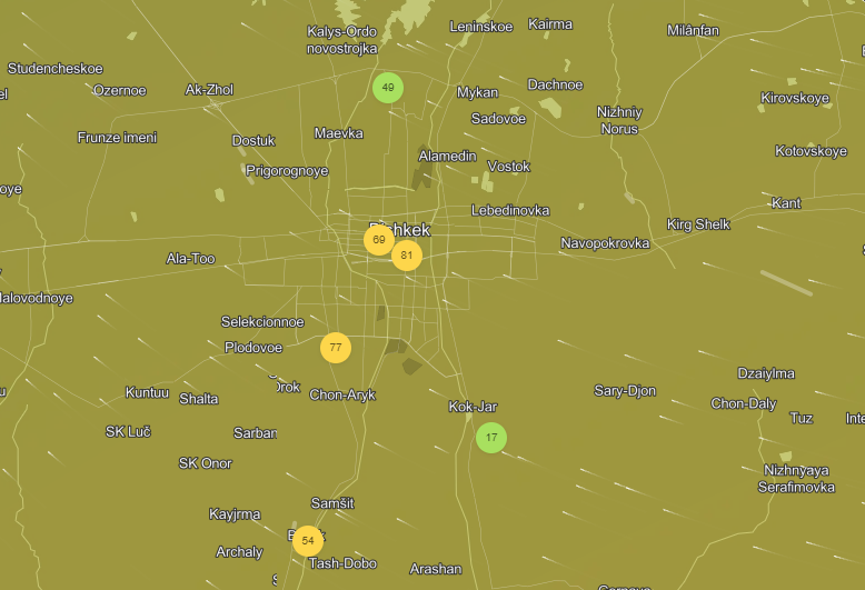 Добавим, что недавно Бишкек стал лидером по загрязнению воздуха в мире. Ранее министр природы Медер Машиев заявил, что в городе смога стало меньше. По его словам, основные причины смога — это отсутствие катализаторов у 85 процентов автомобилей в стране, увеличение количества жилмассивов вокруг столицы, хаотичное, неплановое строительство и вырубка деревьев.