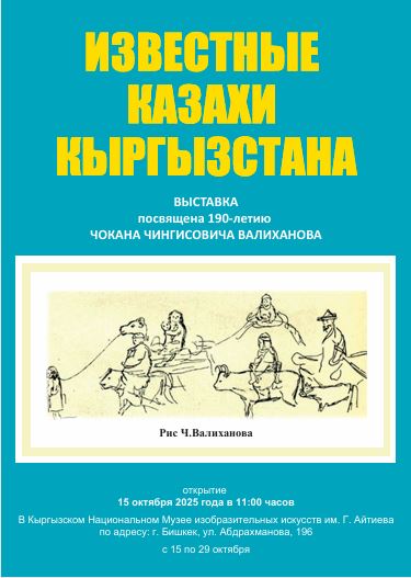 В Бишкеке 15 октября состоится художественно-документальная выставка «Известные казахи Кыргызстана», созданная по мотивам одноименного журнала, посвященного выдающимся представителям казахского народа, внесшим значительный вклад в развитие Кыргызстана. Выставка посвящена 190-летию Чокана Валиханова. Об этом 24-kg.com сообщили в Кыргызском национальном музее изобразительного искусства имени Гапара Айтиева.