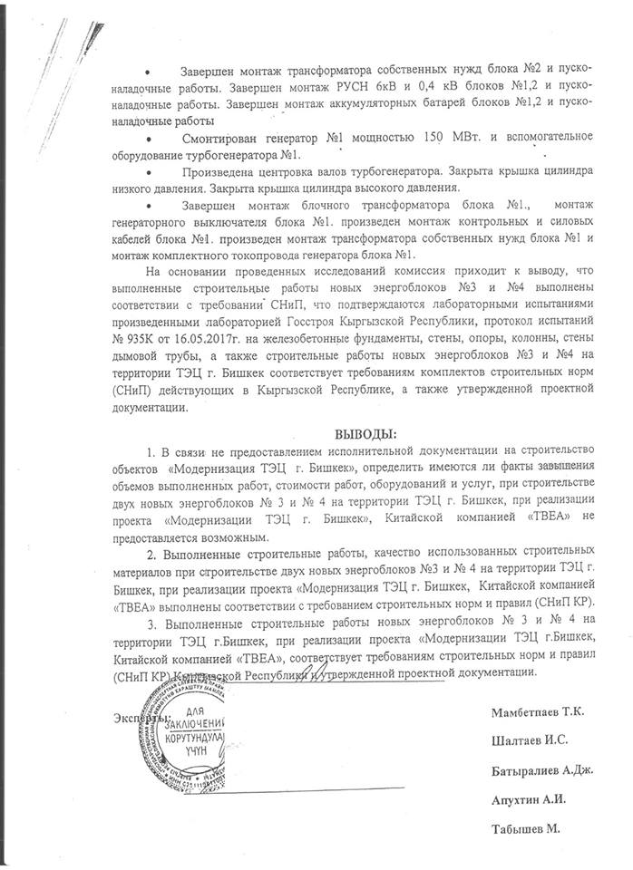 В социальной сети Facebook опубликовали результаты судебной экспертизы по модернизации ТЭЦ Бишкека.