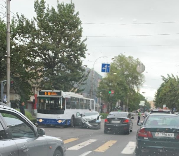 В Бишкеке автомобиль Toyota врезался в троллейбус. Об этом сообщает пресс-служба управления Патрульной службы милиции.