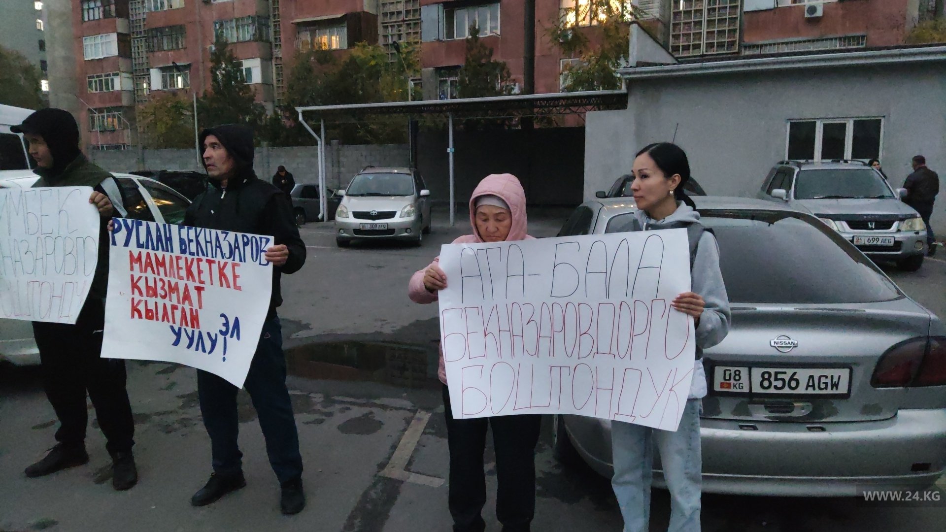 На плакатах написано: «Садыр Жапаров, прекрати политические гонения», «Свободу Бекназаровым — сыну и отцу».