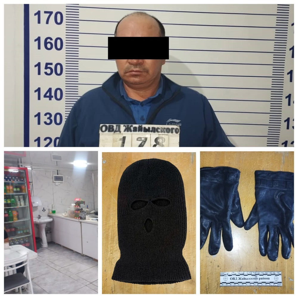 30 августа в милицию обратилась женщина, работающая в пункте общественного питания. Она рассказала, что утром с запасного входа ворвался мужчина в маске, вооруженный арматурой, и потребовал отдать все деньги. Опасаясь за свою жизнь, женщина отдала ему из кассы 42 тысячи сомов. Мужчина также забрал два телефона, запер женщину и убежал.
