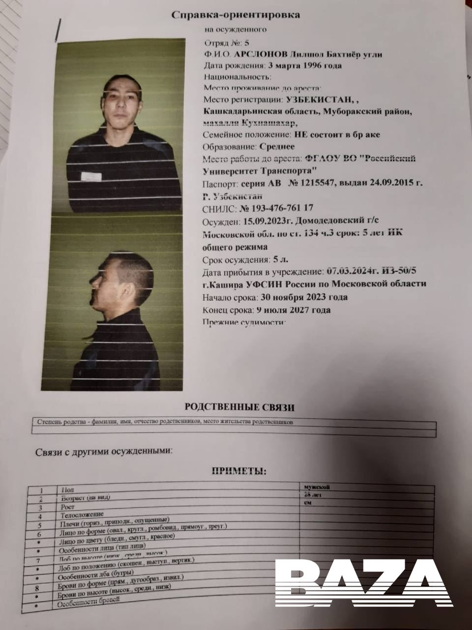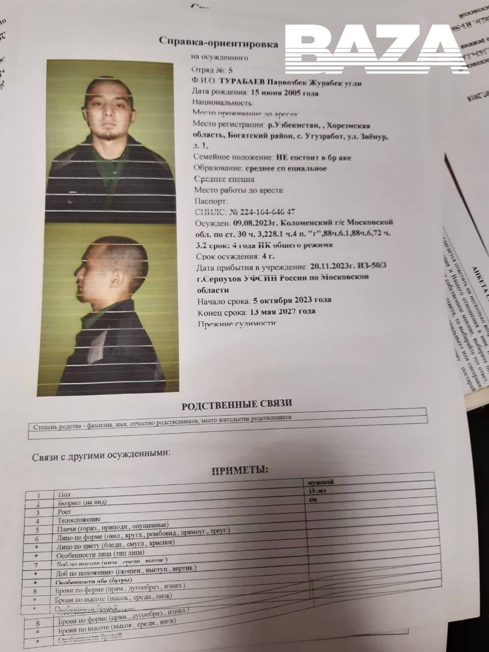 Согласно данным, указанных в них, осужденные, которые совершили сегодня ночью побег через подкоп, граждане Узбекистана и Таджикистана, сообщается в Telegram-канале Baza.