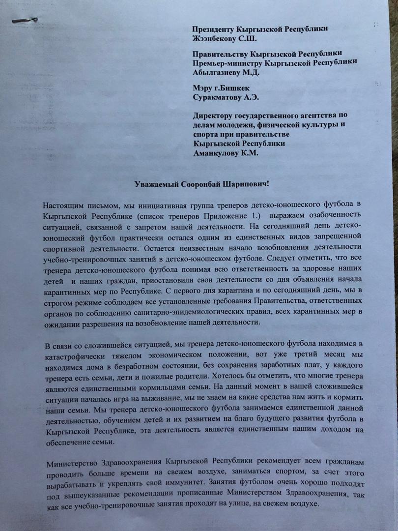 «Мы находимся в катастрофически тяжелом экономическом положении, вот уже третий месяц сидим дома, без работы, без сохранения зарплат. У каждого тренера семьи, дети и пожилые родители, где являются единственными кормильцами семьи», — пишут они.