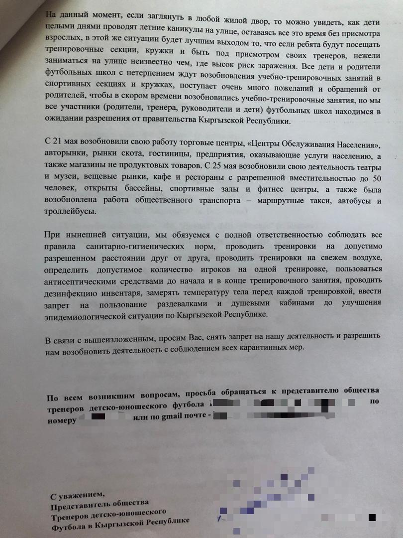 Тренеры напоминают, что во время занятия спортом у людей укрепляется иммунитет, который в дальнейшем может противостоять любой инфекции. «Для сравнения: в Казахстане с 1 июня возобновили тренировки в детско-юношеском футболе, у нас же до сих пор запрет», — отмечают они.