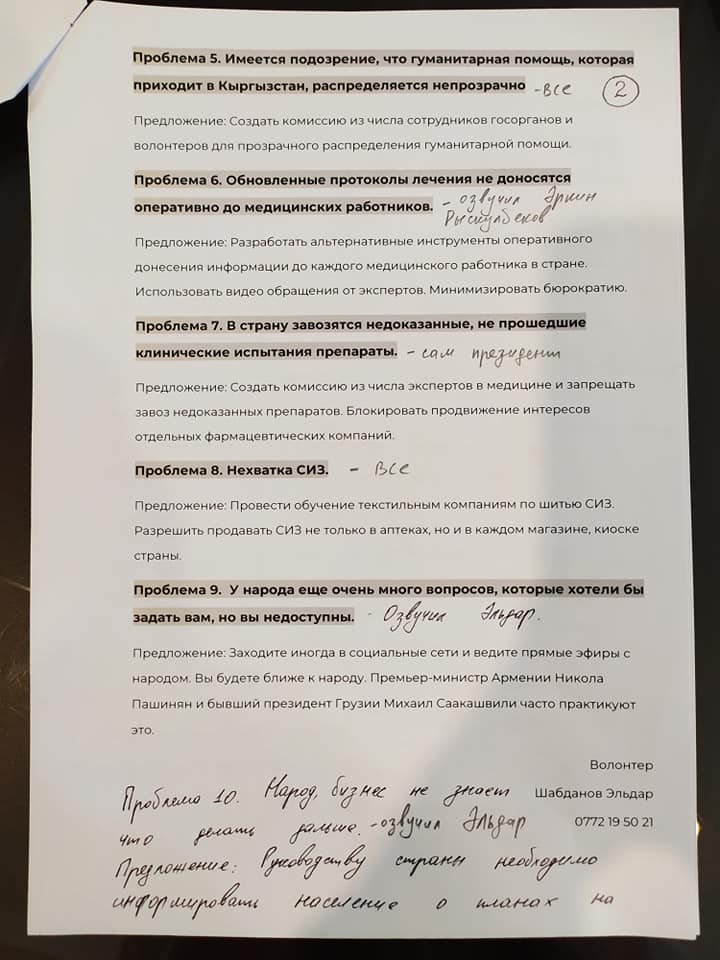 Он обозначил главе государства проблему: у народа очень много вопросов, которые хотели бы задать Сооронбаю Жээнбекову, но он недоступен.