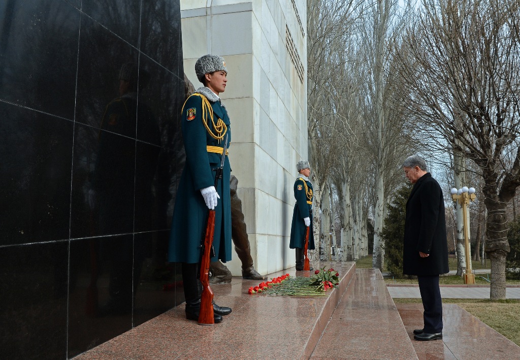Глава правительства Сооронбай Жээнбеков и руководитель аппарата президента КР Сапар Исаков возложили цветы на месте аксыйских событий, прочитали молитву в память о погибших 17 марта 2002 года.