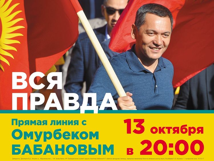 Прямая линия кандидата в президенты Кыргызстана Омурбека Бабанова состоится 13 октября в 20.00.