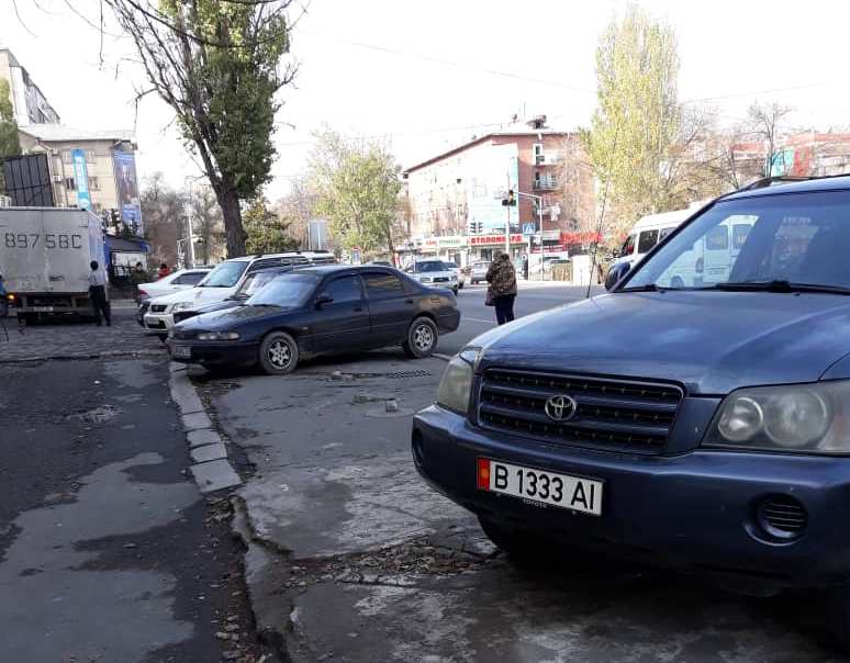 Водители, по традиции, жалуются на тех, кто оставляет машины посреди дороги. «Это не авария, он припорковался так», — прокомментировал свое фото, сделанное на перекрестке улиц Тоголок Молдо и Щербакова, читатель.