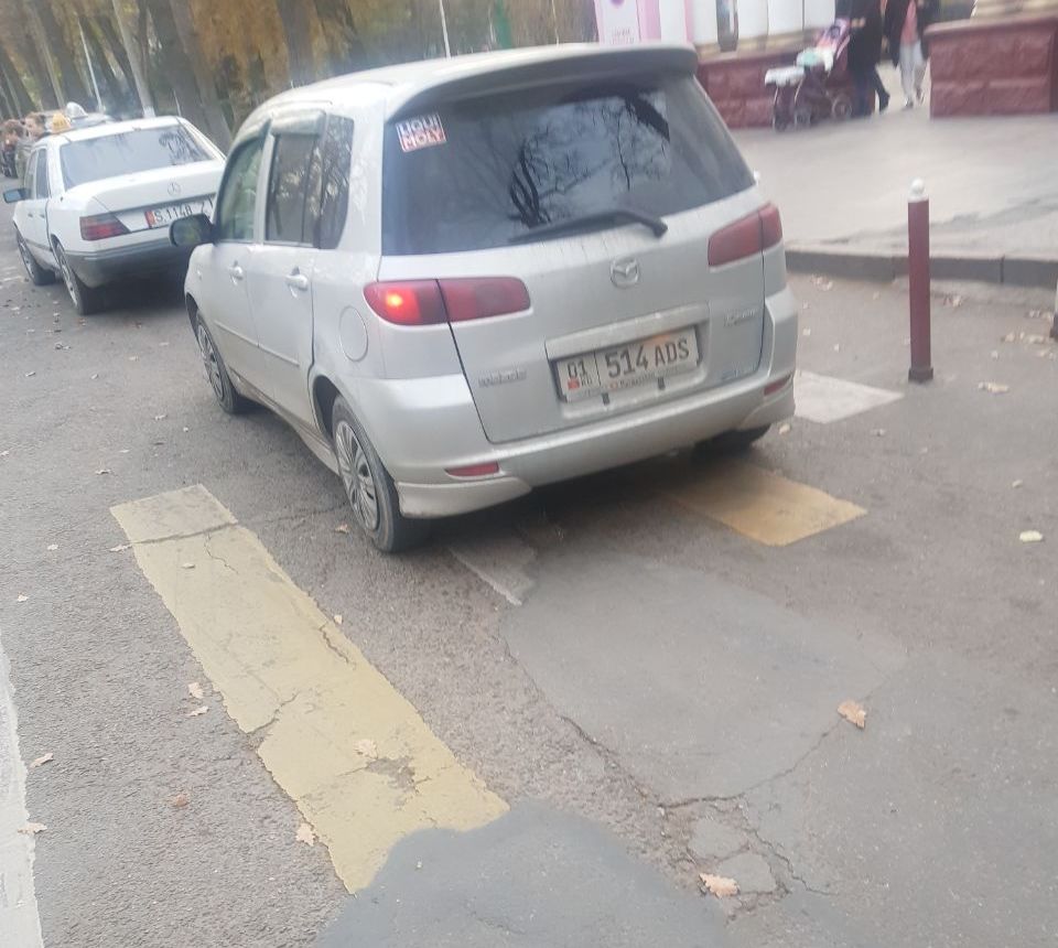 Мэрия убрала парковки вдоль проспекта Манаса, водители паркуются где придется. На пересечении с улицей Киевской, например, машины стоят там, где летом был газон.