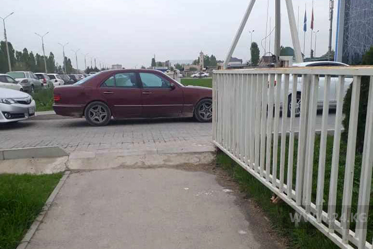 Свои машины «чудаки парковки» оставляют везде, где только можно: на газонах, тротуарах и перекрестках. В жилмассиве «Арча-Бешик» водитель поставил авто на тротуаре, перекрыв проход пешеходам.