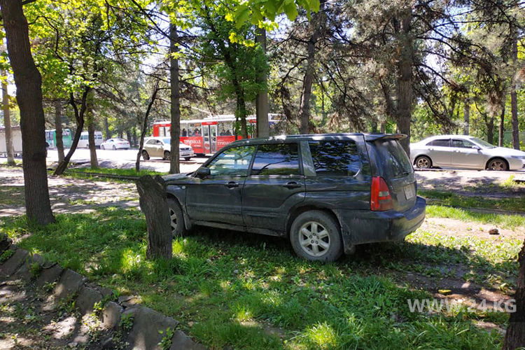 Еще один автолюбитель заехал на газон на улице Ахунбаева.