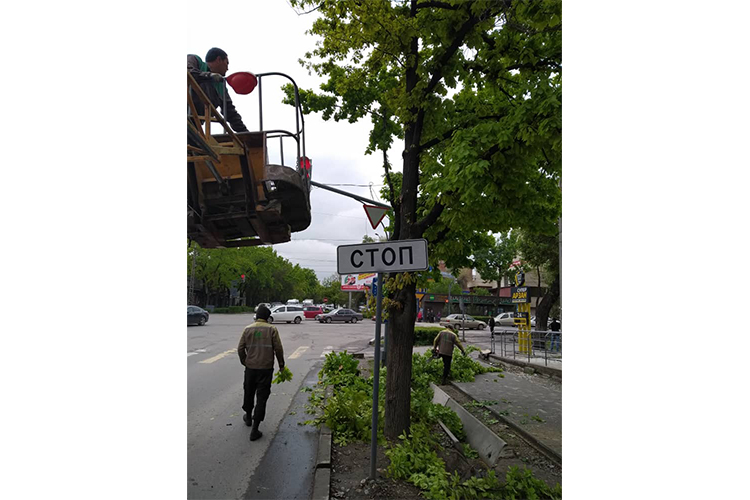 В муниципалитете на сигналы отреагировали. Знак установили на место, а Бишкекзеленхоз обрезал ветви, закрывающие объект.