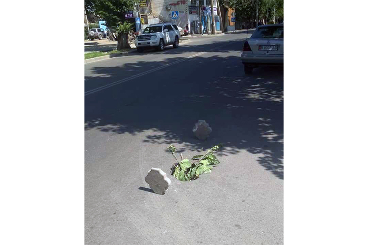 «Кто-то огородил яму кусочками брусчатки, чтобы машины не попадали в нее колесами», — сообщил он.