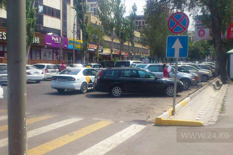 Водители не боятся оставлять машины под запрещающими знаками. Вот обычная картина на перекрестке проспекта Чуй и улицы Исанова.