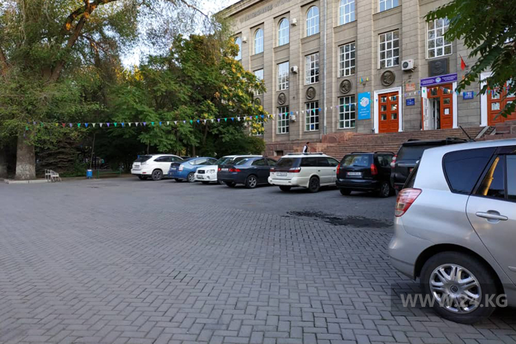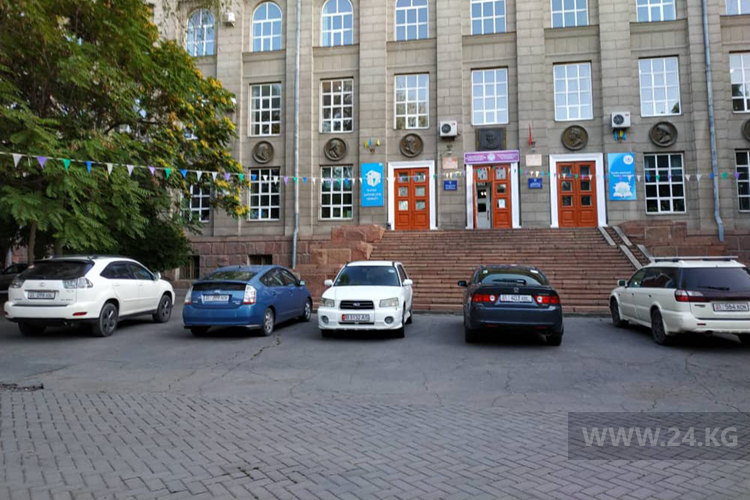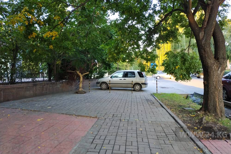 Возле Республиканской библиотеки для детей и юношества имени К.Баялинова устроили парковку.