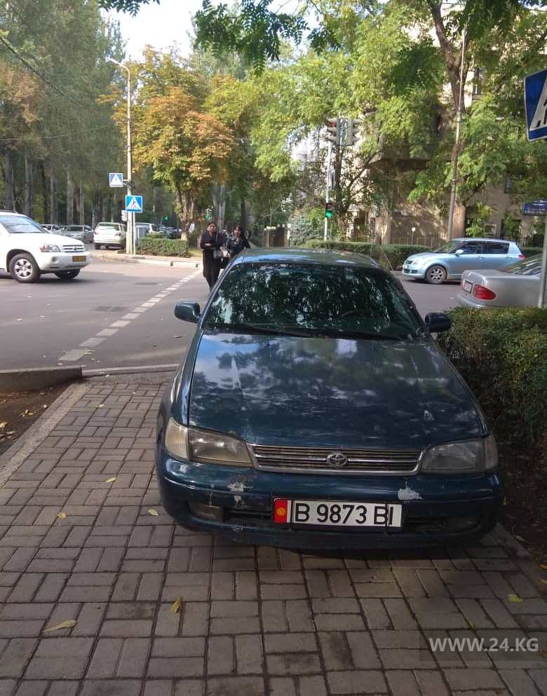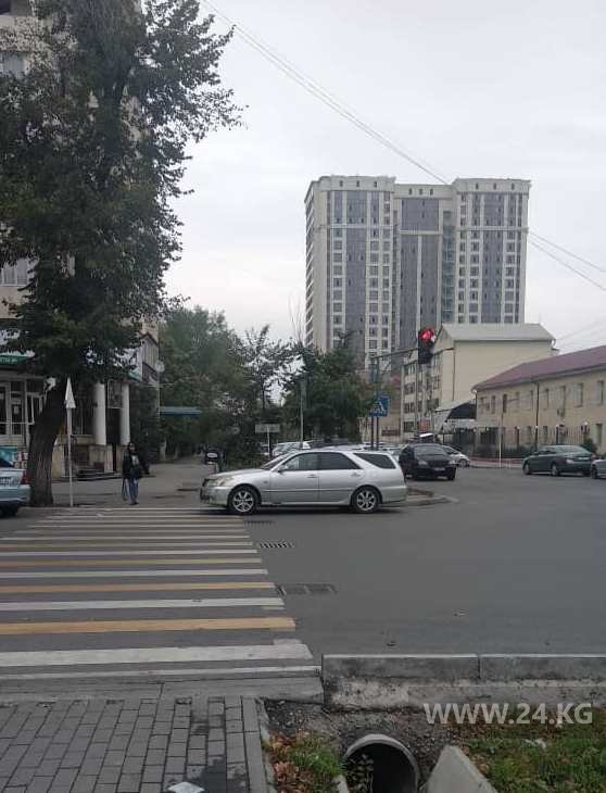 Обычные автолюбители не уступают таксистам. Например, на перекрестке улиц Тыныстанова и Абдымомунова водитель заехал на аллею и частично заблокировал пешеходный переход.
