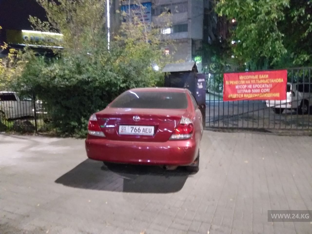 В районе пересечения улиц Киевской и Абдрахманова водитель красной «Тойоты» заблокировал выход со двора жилого дома, перегородил пешеходную аллею и ушел.