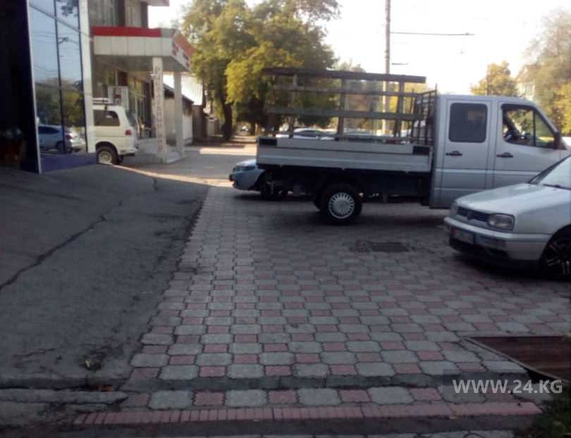 Бишкекчане жалуются и на автолюбителей, оставляющих машины на тротуаре возле Государственной налоговой службы.