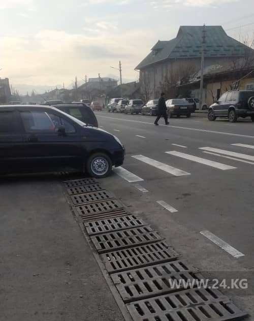 В Оше на улице Шакирова машины стояли на пешеходном переходе.Чтобы стать «агентом 024», вы можете сообщить новость, отправив ее в WhatsApp или Telegram по телефону 0555312024.
