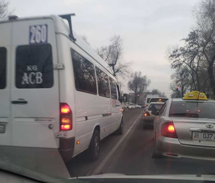 Водитель микроавтобуса маршрута № 260 на перекрестке улиц Толстого и Асаналиева выехал на полосу встречного движения. Об этом 24-kg.com сообщил читатель.