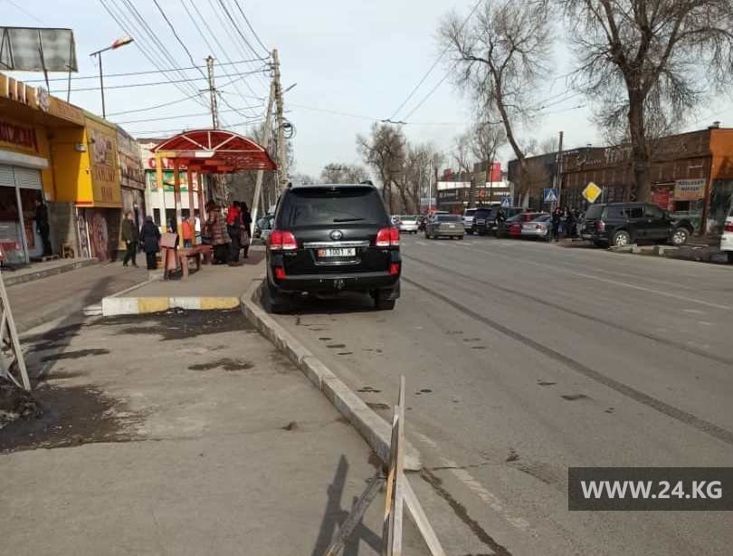 На улице Асаналиева внедорожник стоял на остановке общественного транспорта против движения.