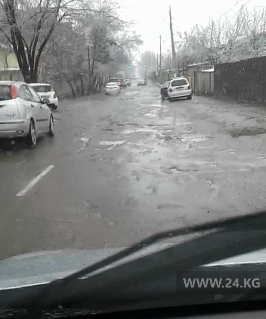 Улица Жукеева-Пудовкина от Ахунбаева до Медерова разбита. Об этом 24-kg.com сообщил читатель.