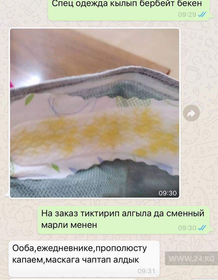 По ее словам, ее мать работает в одной из больниц Бишкека, она вынуждена покупать маски за свой счет. «Маски нужно менять каждые два часа. Мама работает по 10-12 часов, и всем известно, сколько сейчас стоят маски. Им приходится вклеивать внутрь прокладки на каждый день! Для кого-то это может показаться смешным, но тут плакать надо! Куда смотрит Минздрав?» — возмутилась девушка.