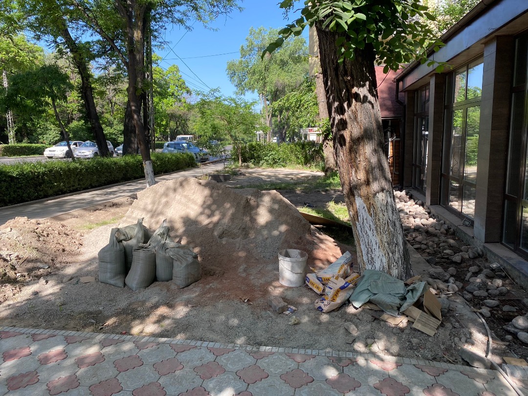 По его словам, такие действия со стороны заведения незаконны, потому что никаких разрешительных документов на установку летника у владельца нет.«Уже подготовили территорию, вырубили и уничтожили зеленую зону. Где городские власти, почему мэрия Бишкека закрывает на вандализм глаза?» — возмущен житель города.