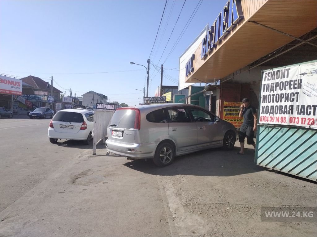 Возле Ортосайского рынка машина стояла на полосе встречного движения. Мужчины что-то в нее грузили, пока другие водители пытались их объехать.