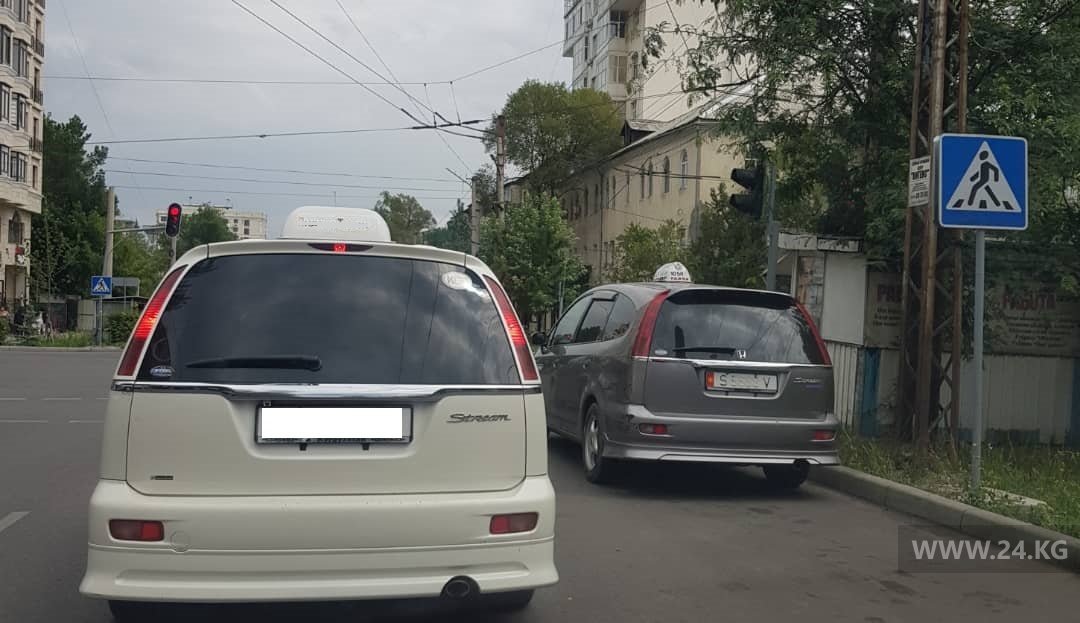 На перекрестке улиц Боконбаева и Тыныстанова такси перекрыло одну полосу. «Образовалась пробка на ровном месте, потому что машины, которые поворачивают на Боконбаева, должны пропускать идущие прямо машины. Нарушитель сидел и наблюдал за этим», — написал читатель.