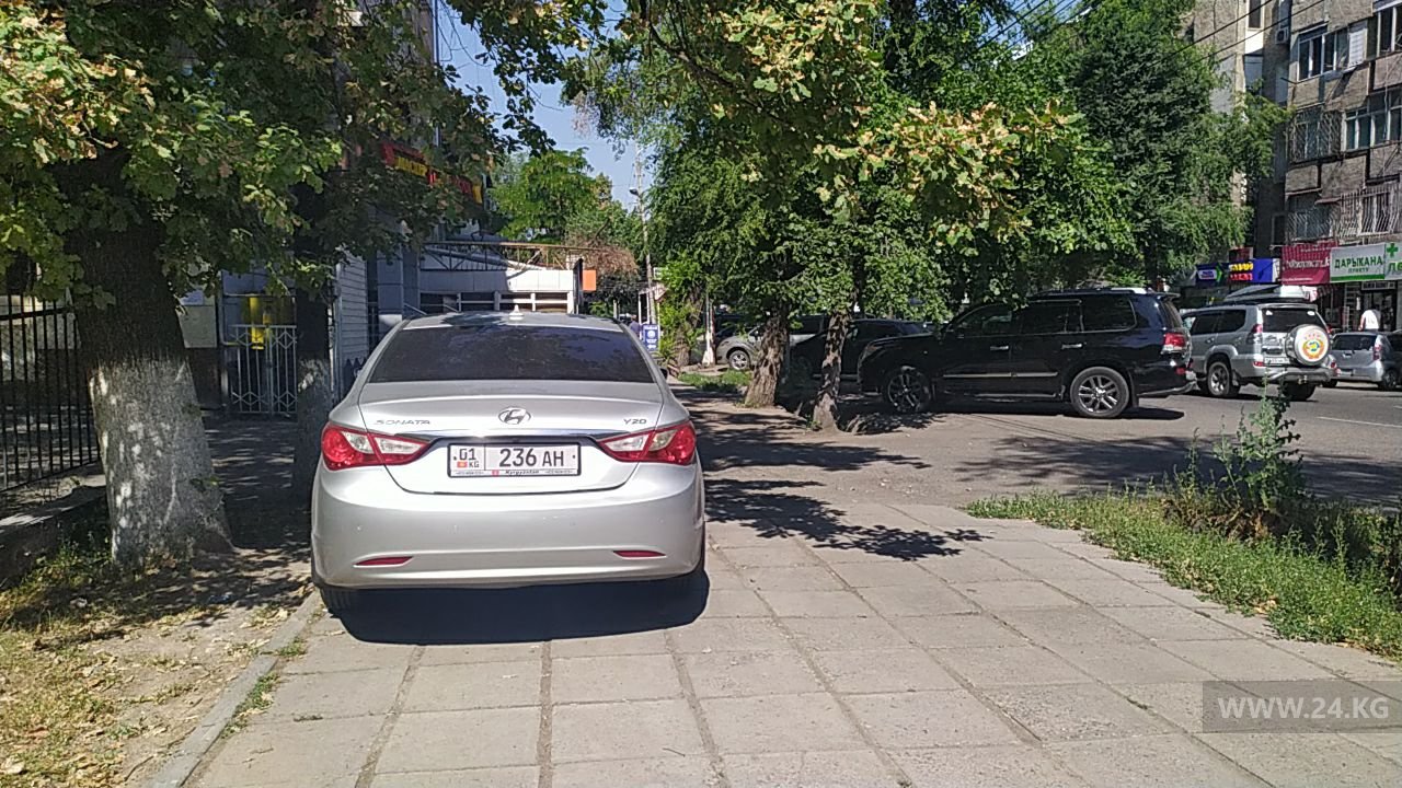 Нарушитель оставил свое авто на аллее в районе перекрестка улиц Токтогула и Тимирязева.