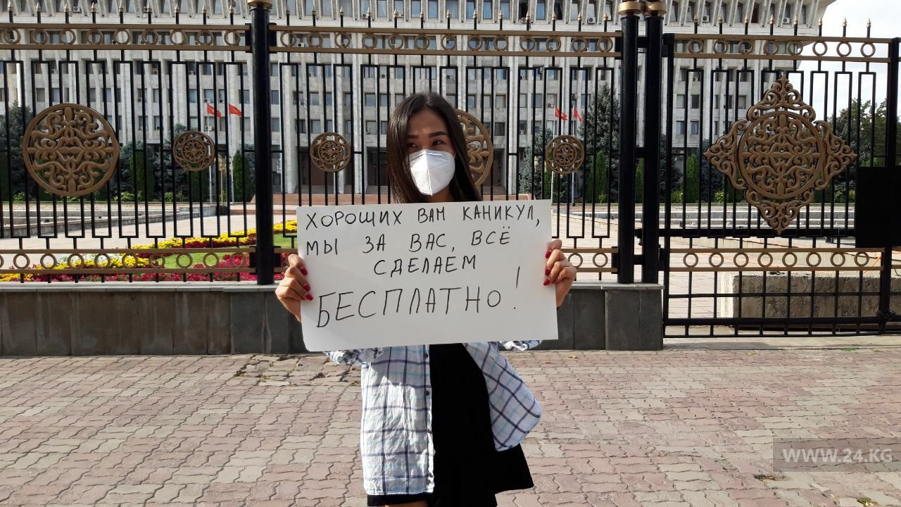 Волонтеров и активистов, которые вышли на мирный митинг и выразили недоумение о каникулах депутатов парламента, разогнали. Об этом 24-kg.com сообщила одна из участниц Айгуль Курбанбаева.