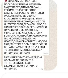 При этом, отмечается в просьбе, если такой формат уроков продлится, то и впоследствии необходимо оплачивать интернет.