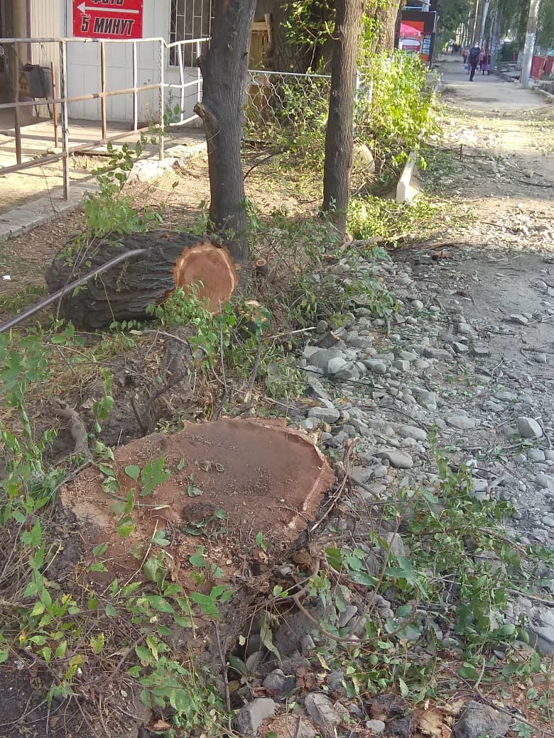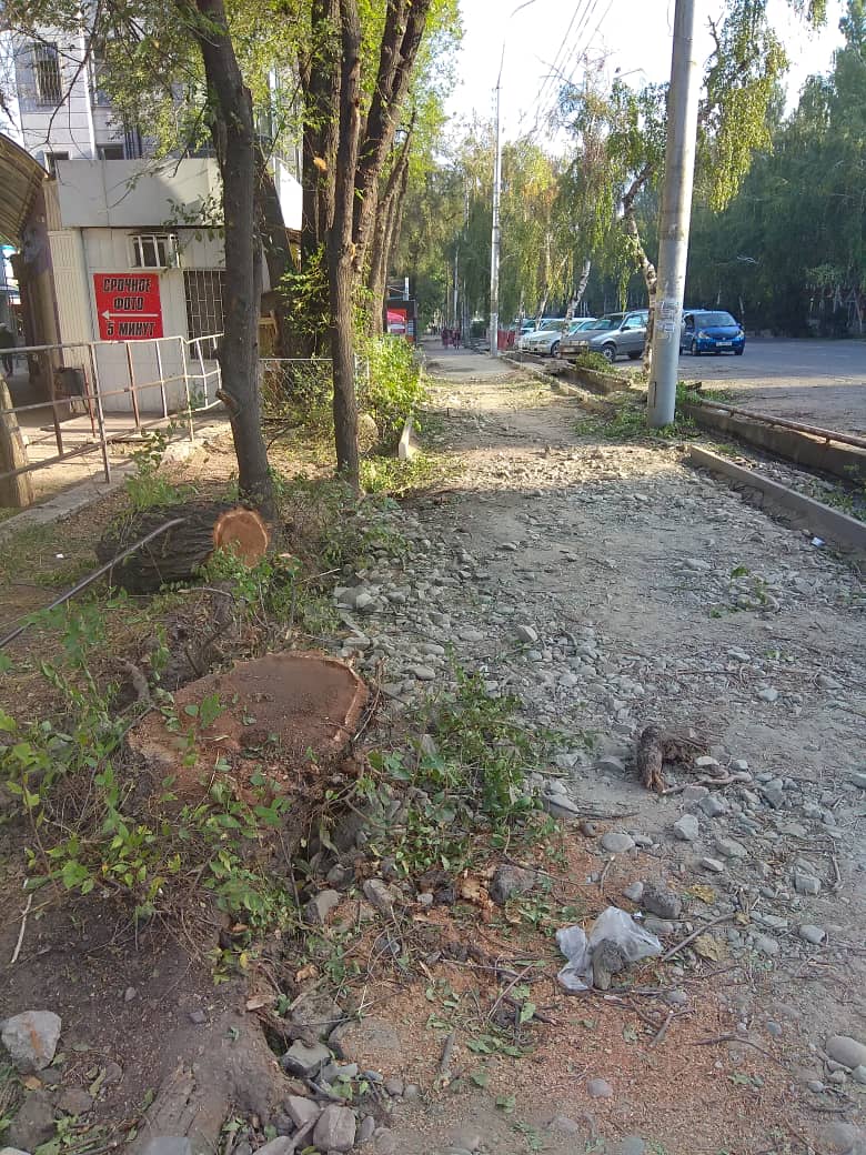 Городские власти вырубают деревья в 9-м микрорайоне, чтобы построить велодорожку. Об этом 24-kg.com сообщил читатель.
