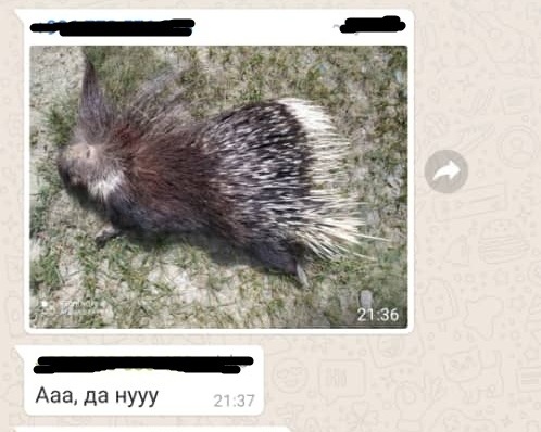 «В основном в сообществе состоят законопослушные граждане, но вчера один человек выставил фото убитого дикобраза. Он убил и съел его. Хотя это животное «краснокнижное». За него полагается большой штраф. Очень обидно, когда нарушают правила охоты и уничтожают животных, которых и так мало осталось. Сейчас можно охотиться только на перепелку и голубей», — пишет читатель.