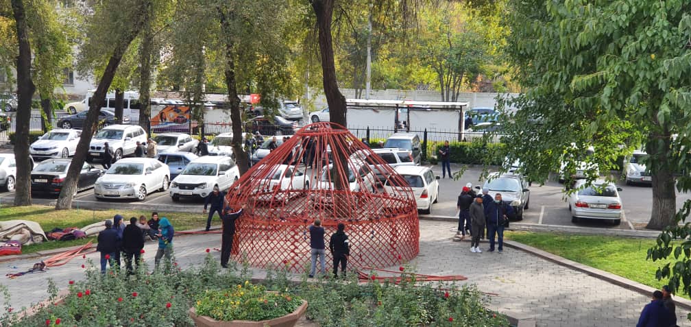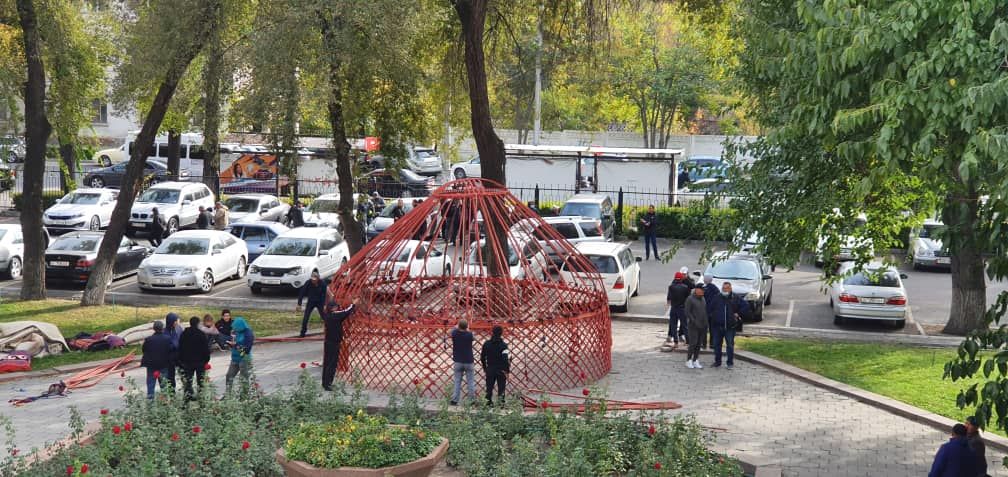 Возле мэрии Бишкека устанавливают юрту. Об этом 24-kg.com сообщил читатель.