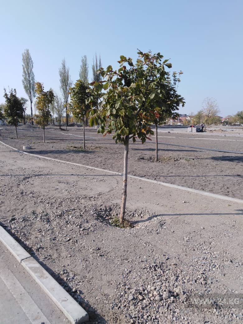 В Бишкеке в парке на улице Токомбаева деревья оказались посреди пешеходных дорожек. Об этом 24-kg.com сообщили читатели.