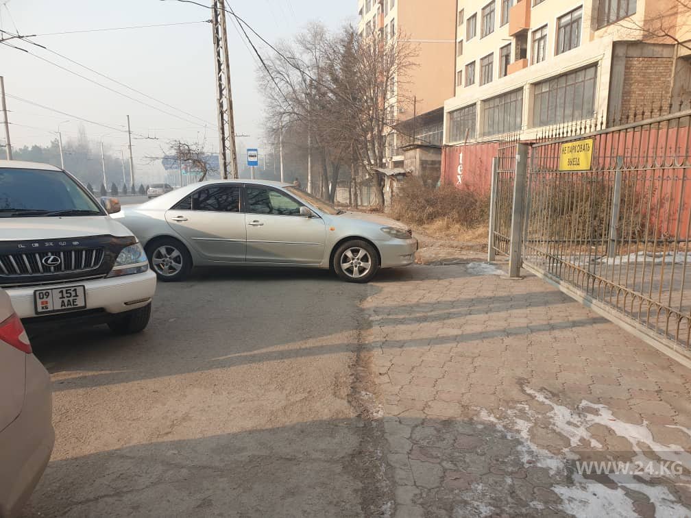 Перегородил дорогу пешеходам на улице Токтогула и владелец этого авто. «Оставил машину на пути. Неужели, он не видел, что машина будет мешать проходу?» — спрашивает автор фото.